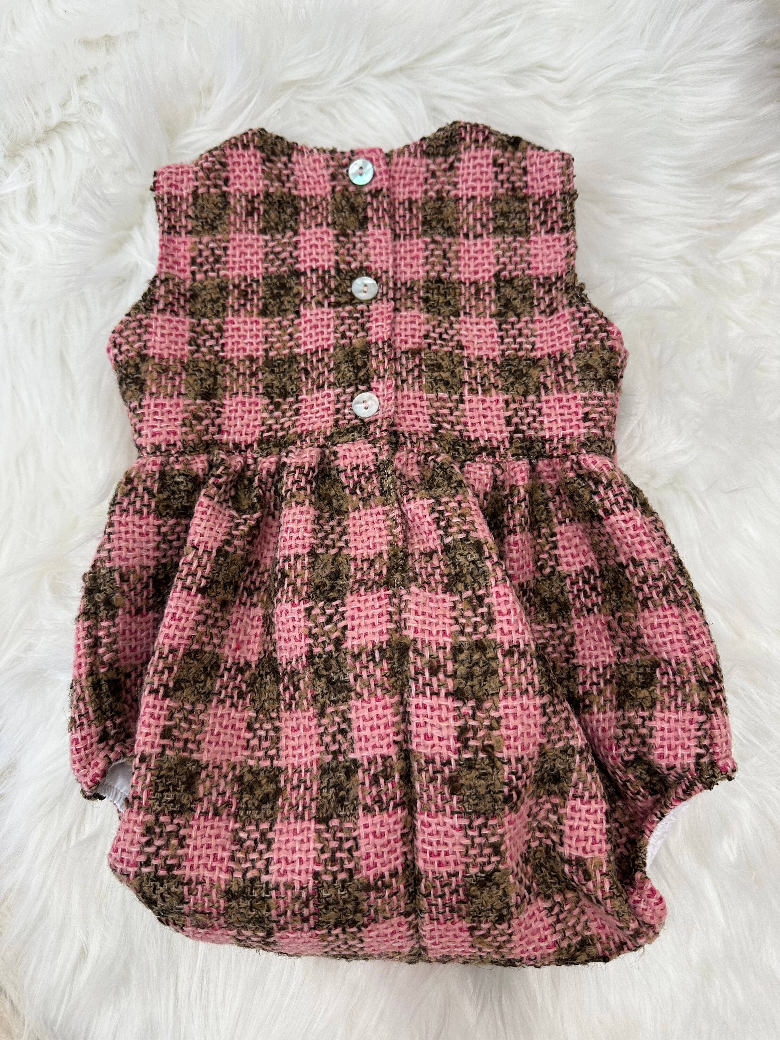 おしゃれでチャーミングなツイードロンパース